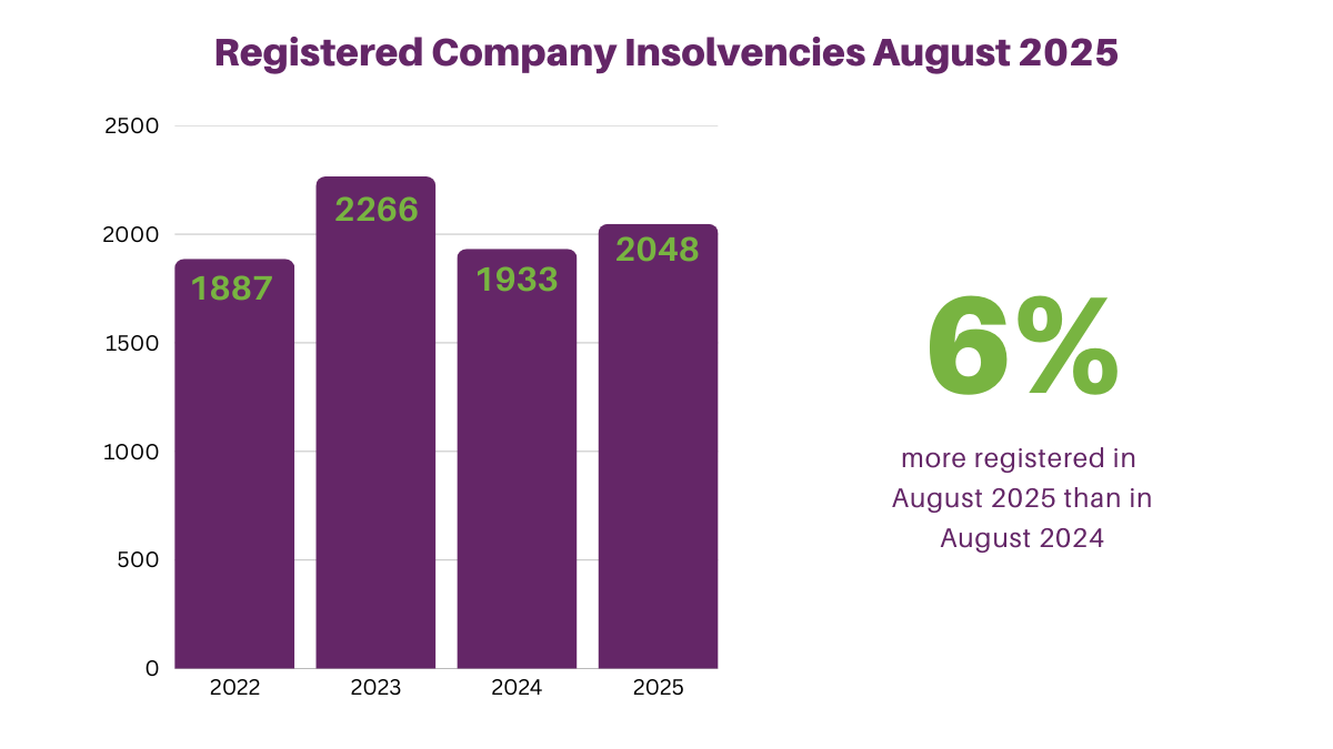 The insolvency statistics released for August show that of the 2,048 registered company insolvencies: