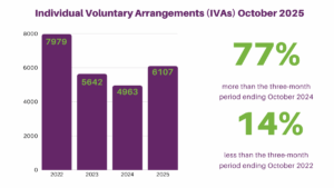 - The numbers of IVAs registered in October 2025 was higher than the average monthly number seen in the first half of 2025.